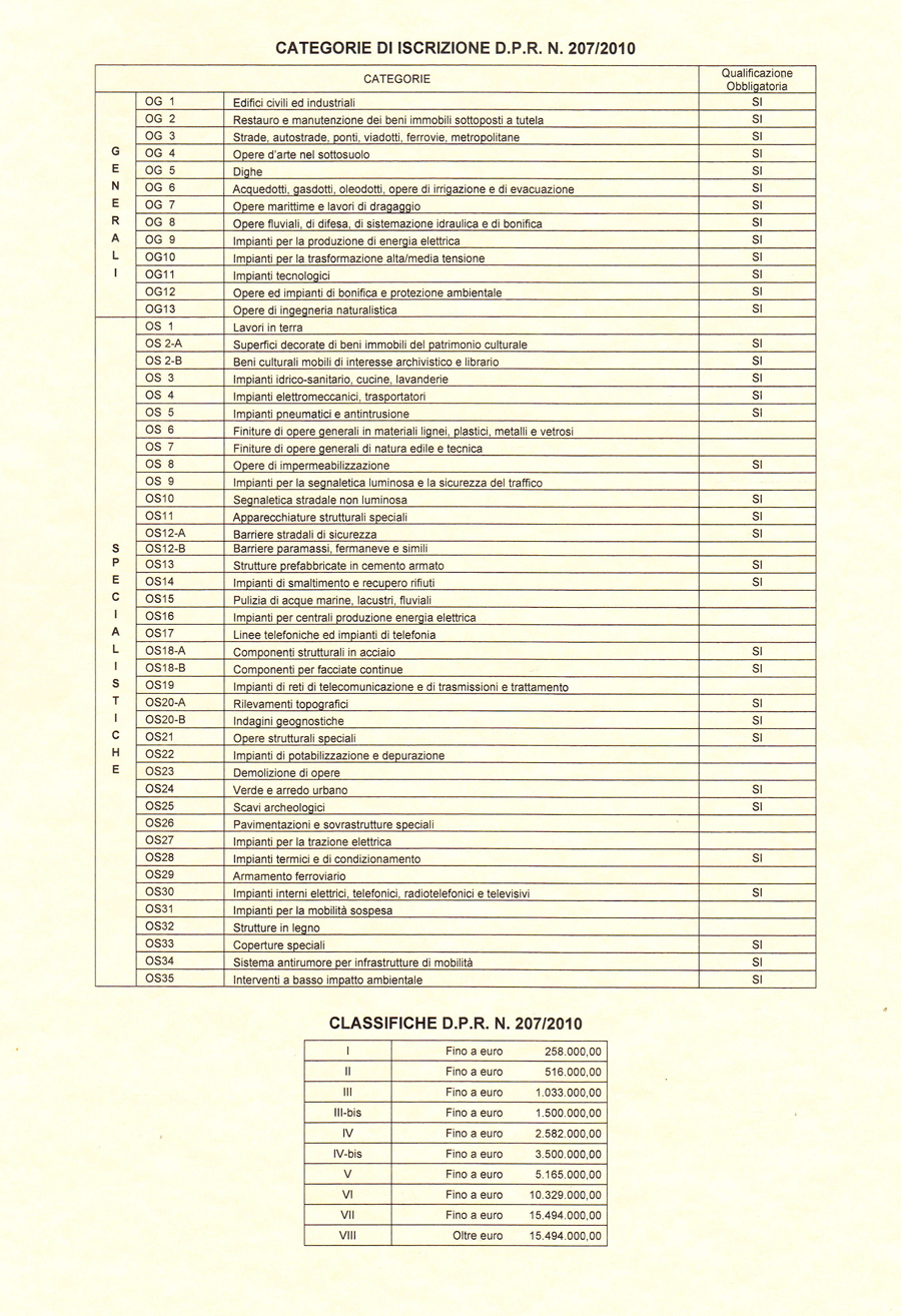 L'impresa è certificata dall'Organismo di attestazione ATTESTA per l'esecuzione di lavori pubblici per la categoria OG1 Classifica II