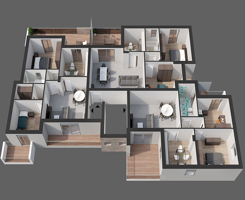 Disponibili varie tipologie di appartamenti (3/4 vani più servizi), appartamenti con ingresso indipendente a piano terra con relative pertinenze e giardini, e posti auto e box auto.