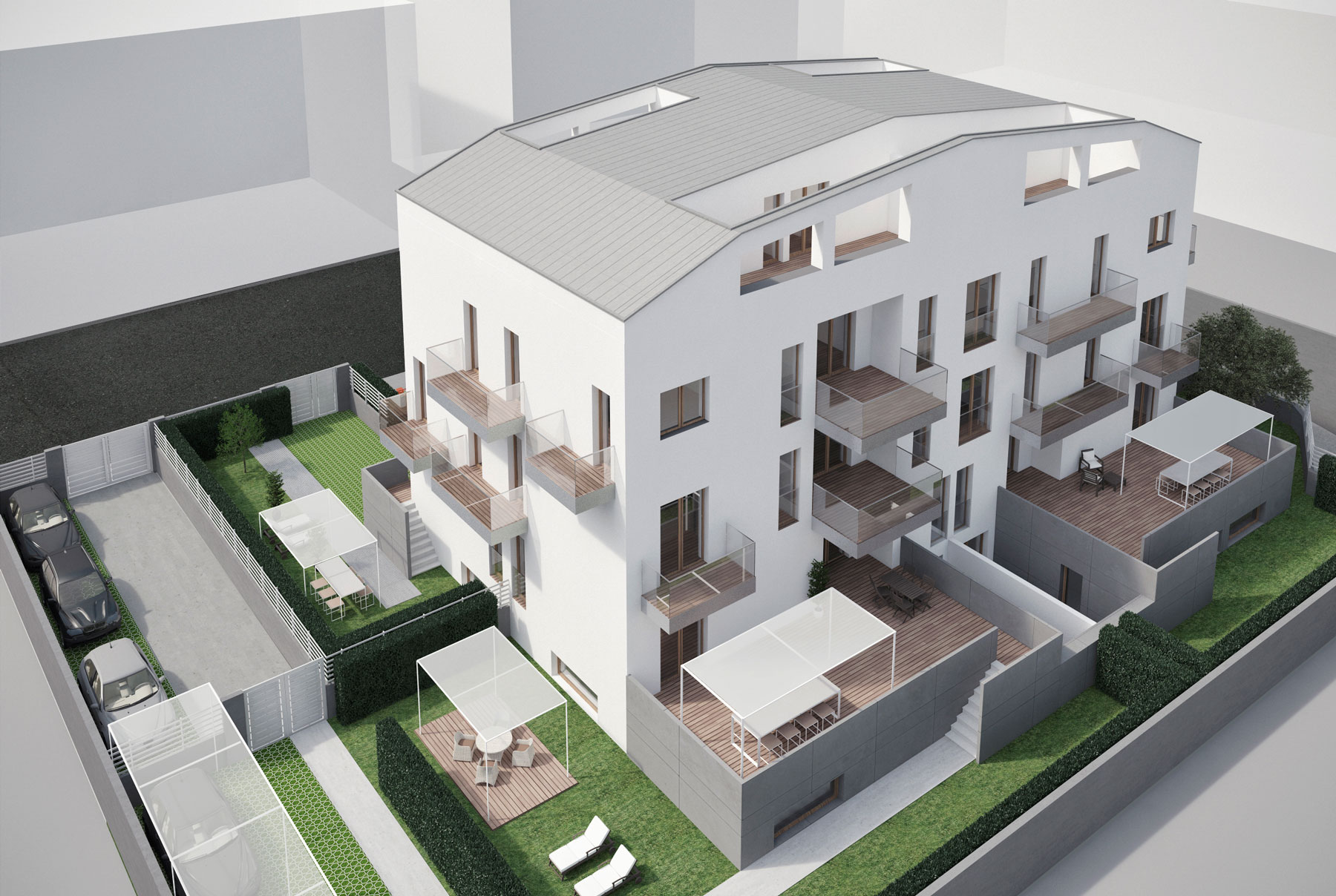 Disponibili varie tipologie di appartamenti (3/4 vani più servizi), appartamenti con inngresso indipendente a piano terra con relative pertinenze e giardini, e posti auto e box auto.