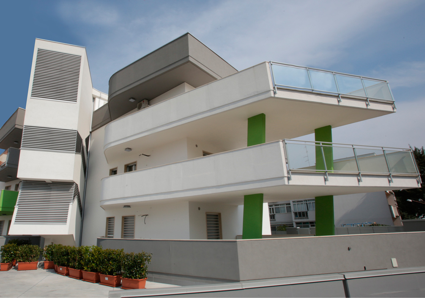 Appartamenti a piano rialzato (3 vani più servizi) con ampie pertinenze esterne di proprietà esclusiva (possibilità di realizzare pergolati e/o gazebi in legno e giardini pensili).