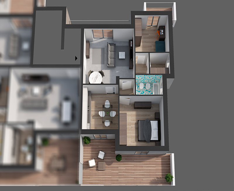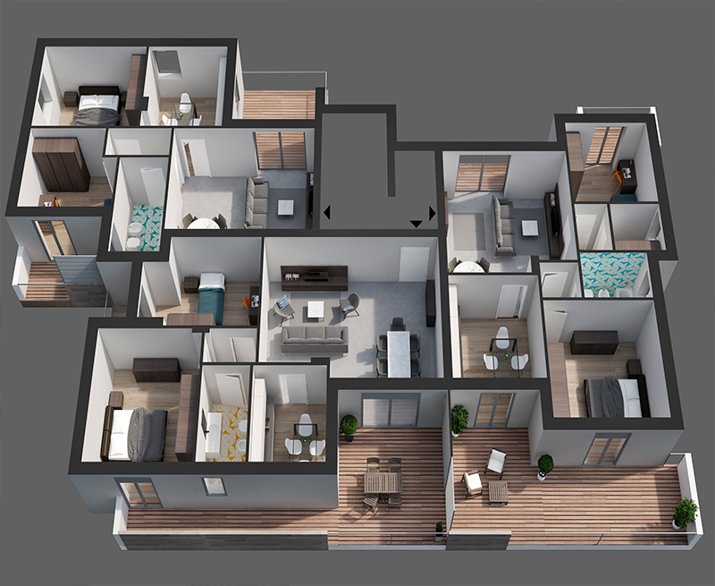 Disponibili varie tipologie di appartamenti (3/4 vani più servizi), appartamenti con ingresso indipendente a piano terra con relative pertinenze e giardini, e posti auto e box auto.