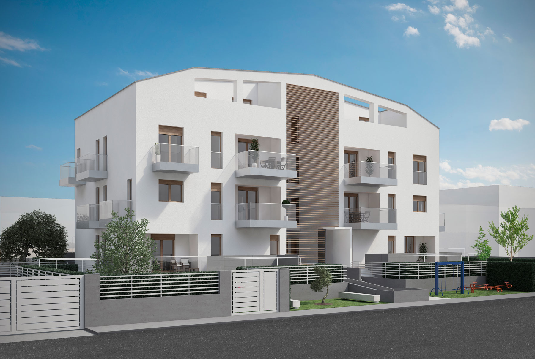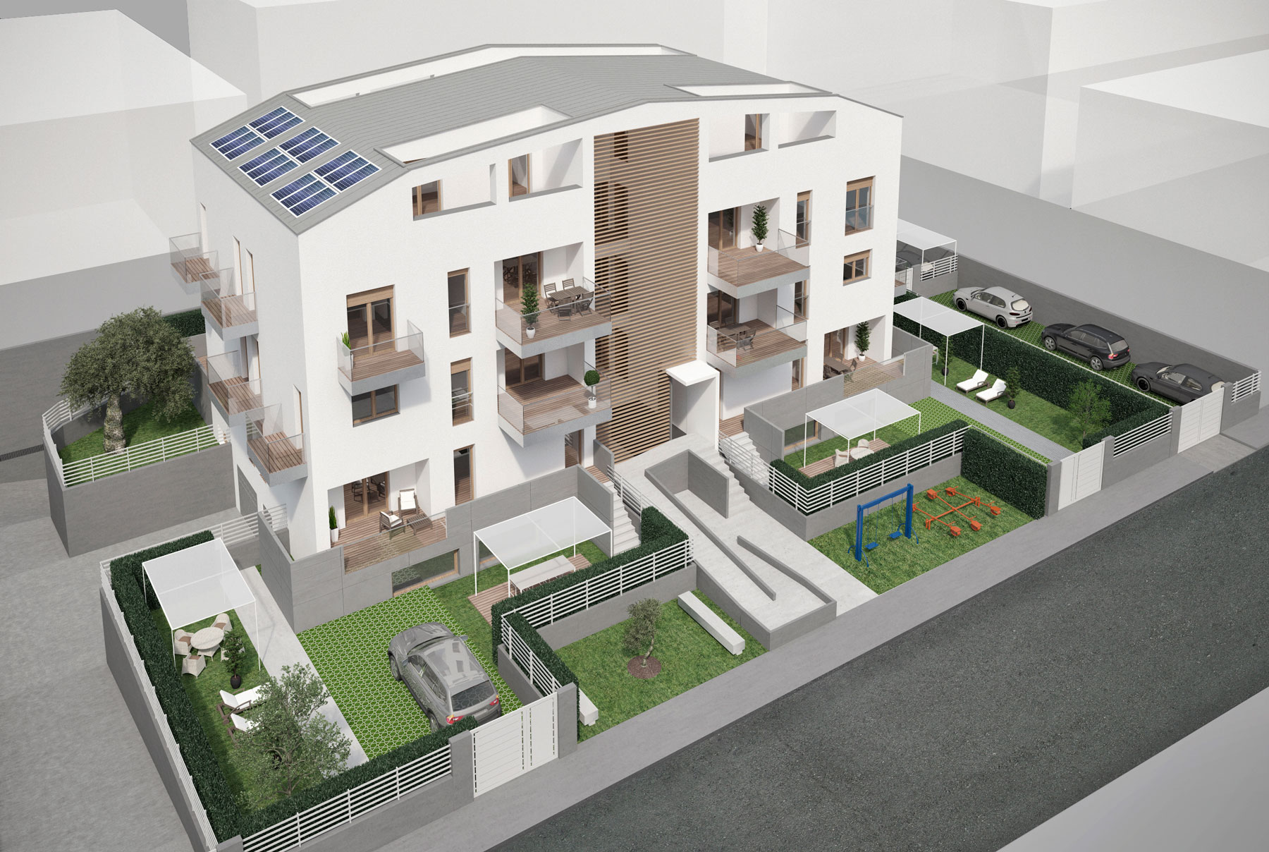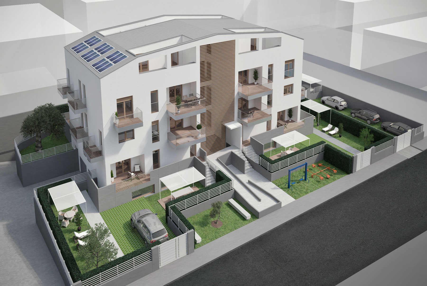 Disponibili varie tipologie di appartamenti (3/4 vani più servizi), appartamenti con inngresso indipendente a piano terra con relative pertinenze e giardini, e posti auto e box auto.