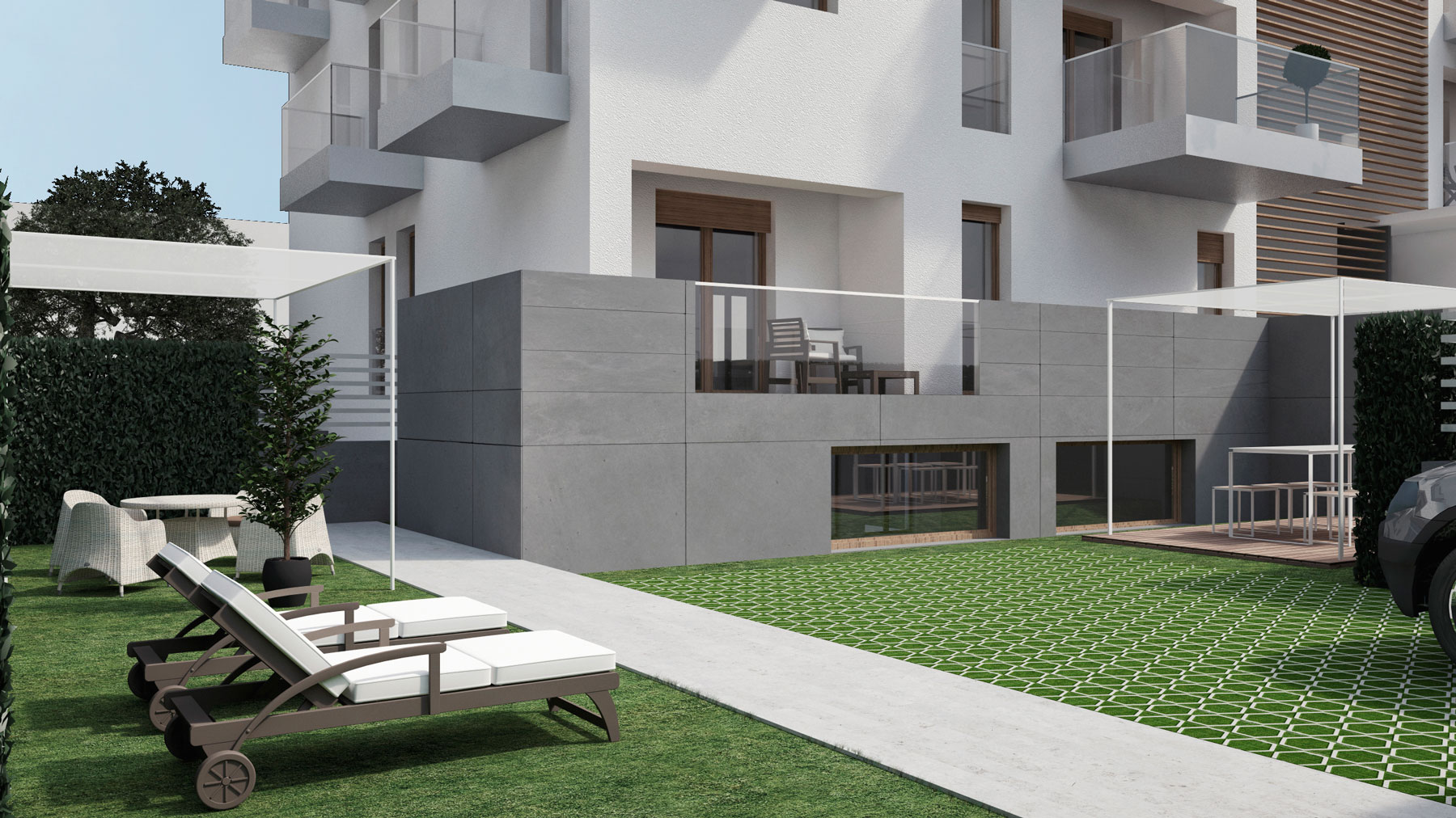 Appartamenti al piano rialzato con pertinenze, locali garage piano a interrato